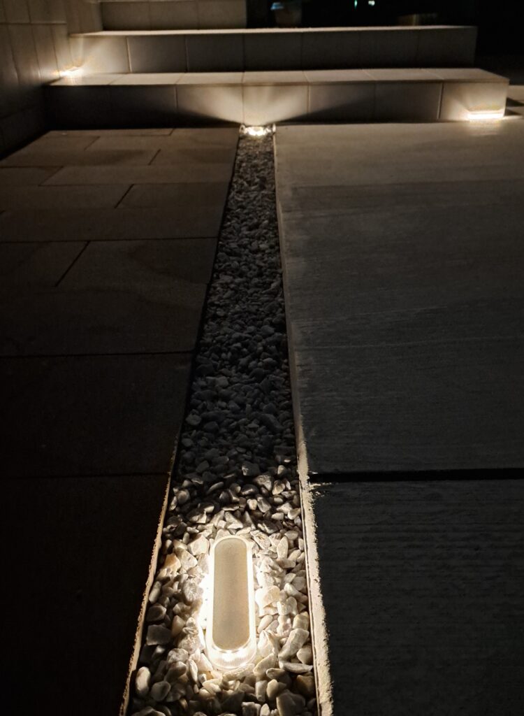 手前の照明、これが入るように砂利部分の横幅を調整しました。